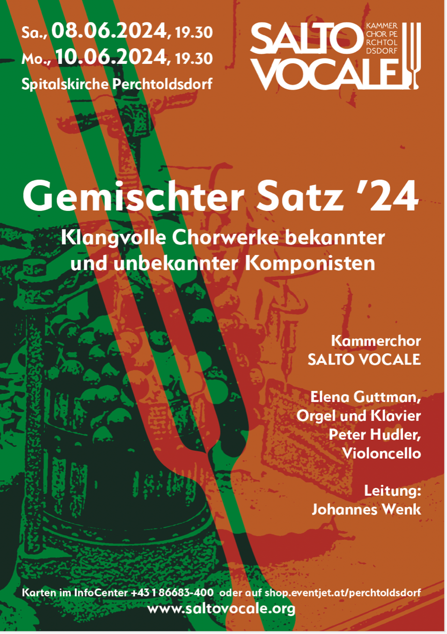 Werke J. S. Bachs wechselten sich mit Stücken des zeitgenössischen estnischen Komponisten Arvo Pärt ab. Dabei standen die fünfstimmige Bach-Motette „Jesu, meine Freude“ BWV 227 und das a cappella-Chorwerk „Triodion“ von Arvo Pärt im Mittelpunkt. Der erste Satz von Bachs Orgel-Triosonate Nr.3 in d-Moll, ein Bach-Werk in Streicherbesetzung sowie Arvo Pärts Orgelstück „Pari Intervallo“ rundeten das anspruchsvolle und tiefgründige Programm ab. Es wirkten mit: Elena Guttman (Orgel), ein Streicherensemble auf historischen Instrumenten und natürlich der Kammerchor SALTO VOCALE Perchtoldsdorf.